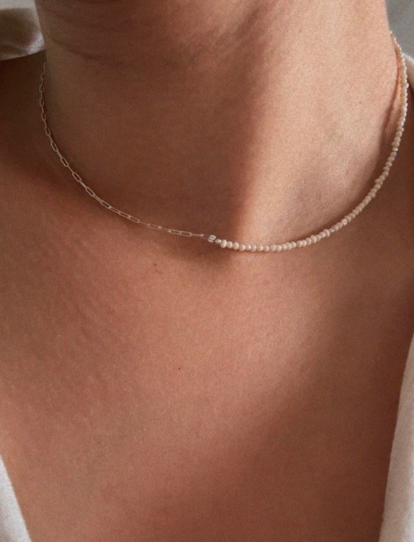 Cadena de mini perlas naturas y cadena plata 925 40cm