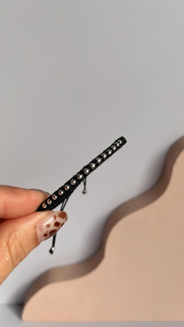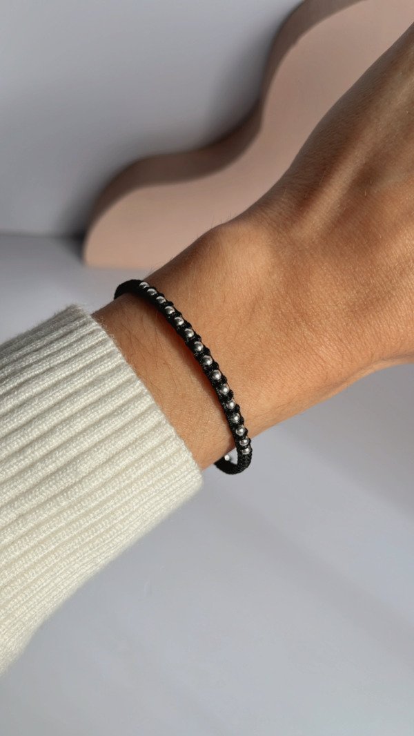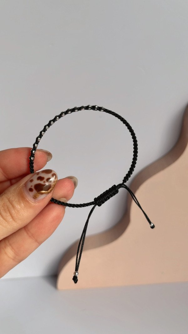 Pulsera de hilo negro con bolitas. Largo regulable
