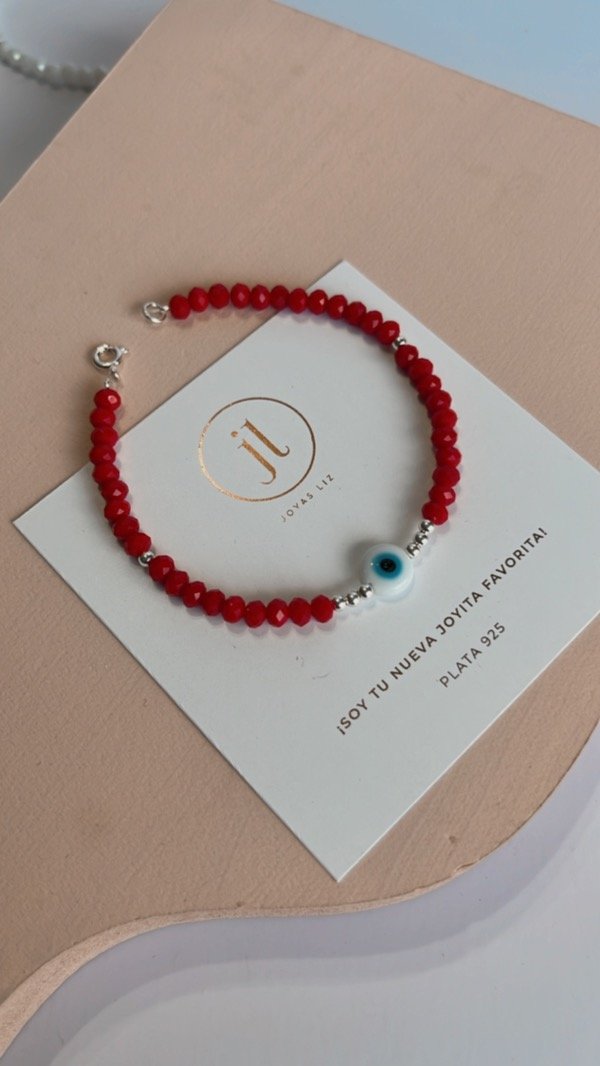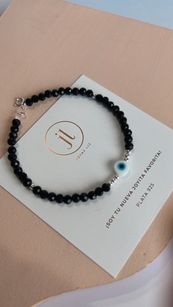 Pulsera cristal de roca y plata 925 con ojito turco